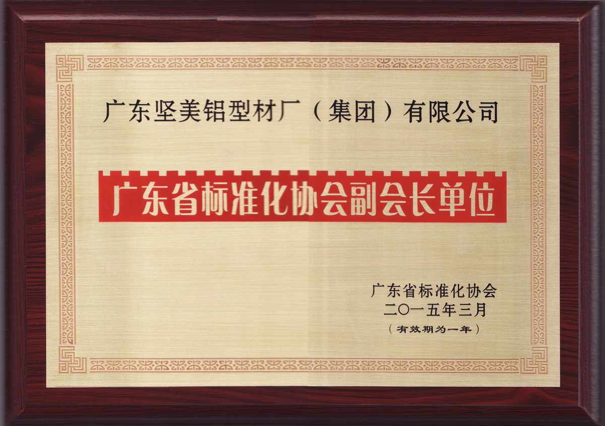 2015年3月 廣東省標準化協會副會長單位:廣東堅美 (廣東省標準化協會)