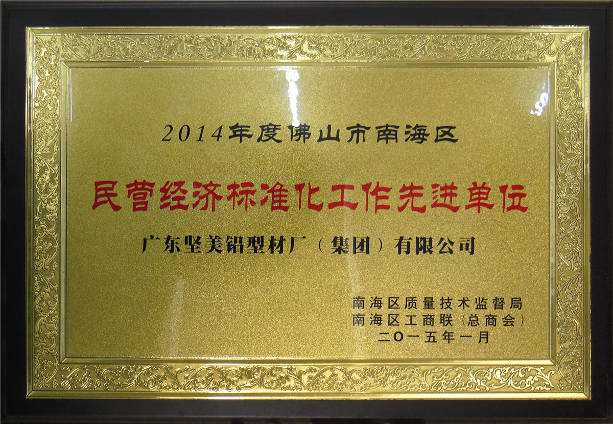 2014年度佛山市南海區民營經濟標準化工作先進單位