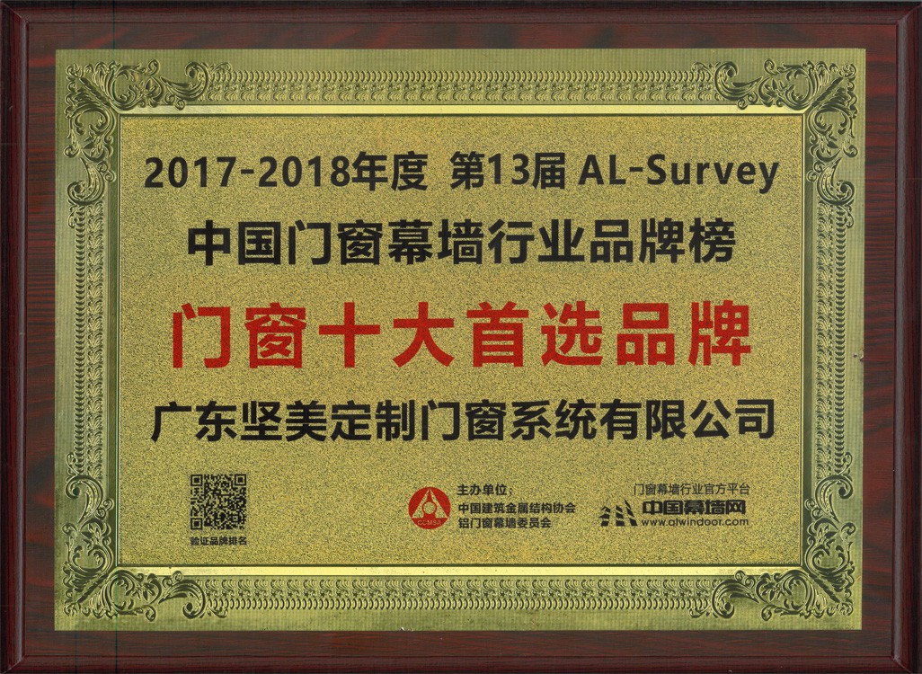 2017-2018第13屆AL-Survey中國(guó)門窗幕墻行業(yè)品牌榜門窗十大首選品牌