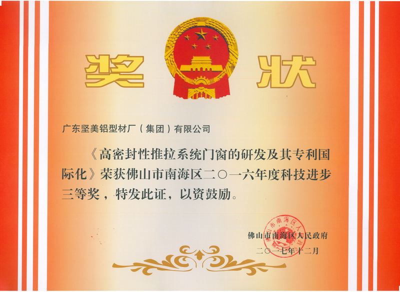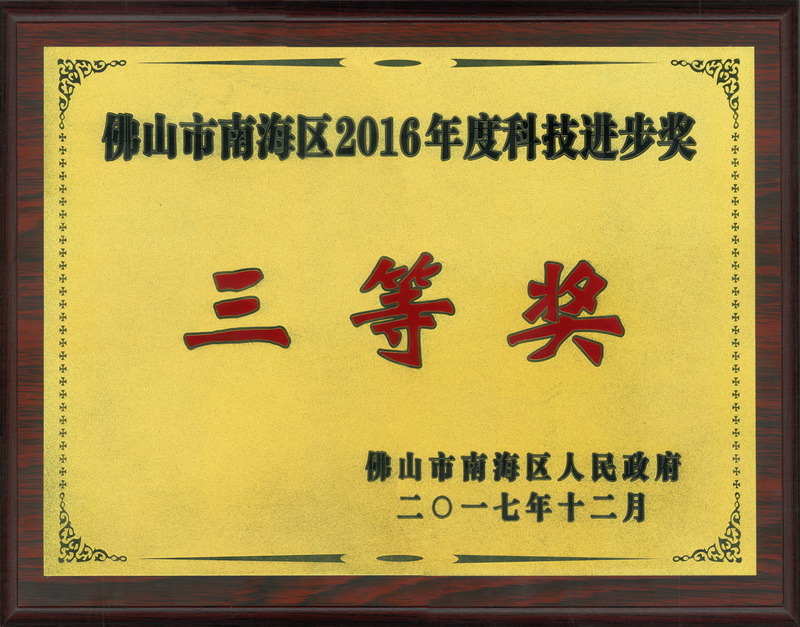佛山市南海區(qū)2016年度科技進(jìn)步獎(jiǎng)三等獎(jiǎng)