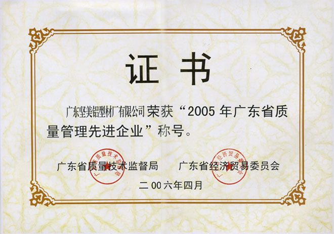 2005年廣東省質(zhì)量管理先進企業(yè)