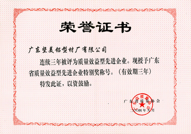 2004年連續(xù)3年被評為質(zhì)量效益型企業(yè)