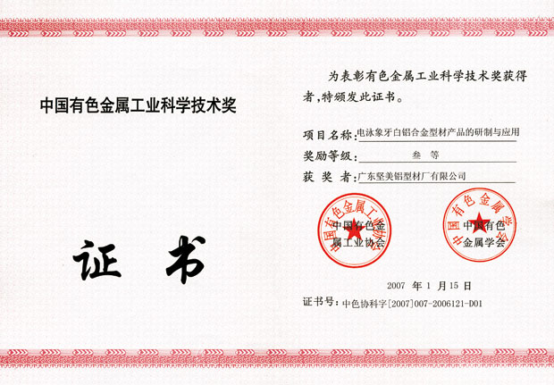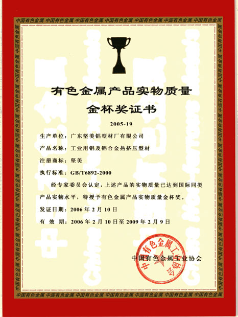 2006年有色金屬產(chǎn)品實物質(zhì)量金杯獎