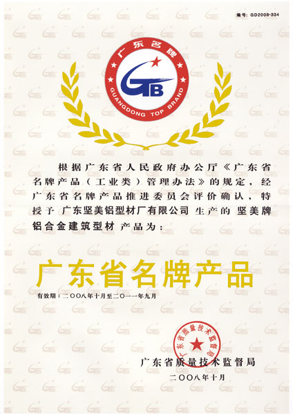 • 2008年廣東省名牌產品