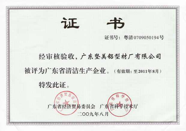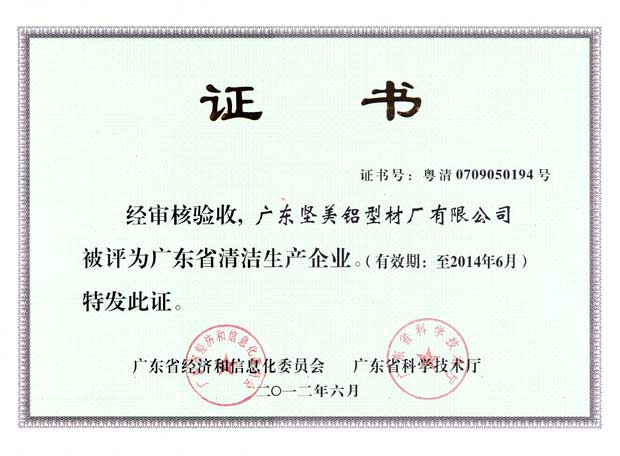 • 2012年廣東堅美廣東省清潔生產企業