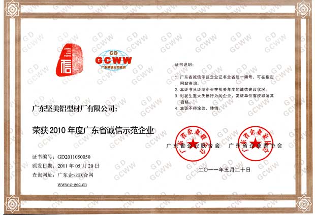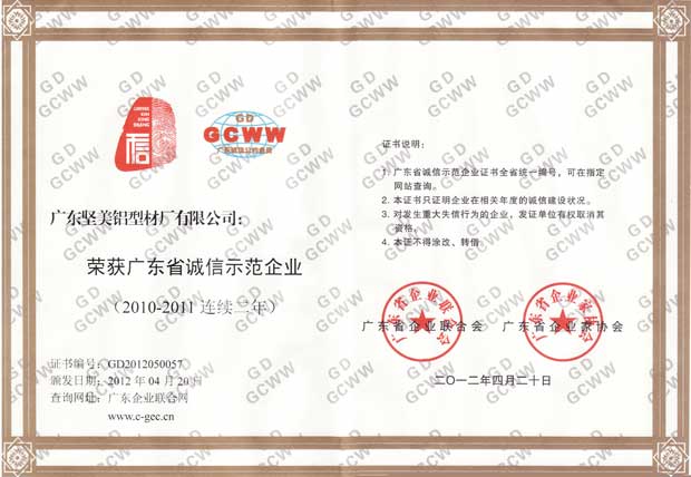 • 2011年廣東誠信示范企業