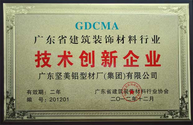 • 2012年廣東省建筑裝飾材料行業技術創新企業