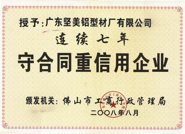 • 2008年連續7年重合同守信用企業