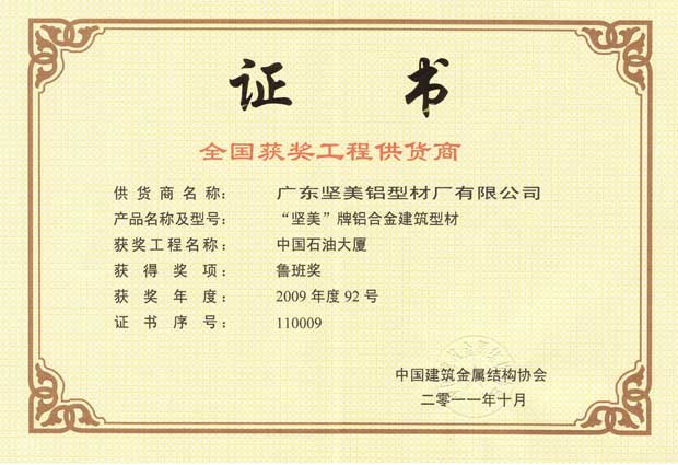 您現在的位置: 首頁 - 堅美鋁業 - 堅美榮譽 - 2008年-2012年