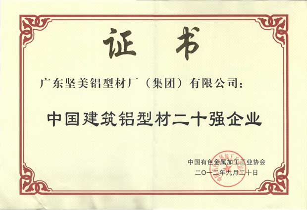 • 2012年中國建筑鋁型材二十強企業