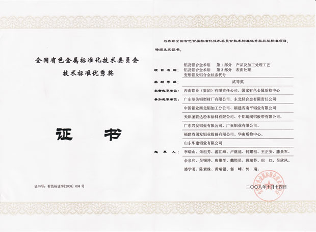 • 2008年全國有色金屬標準化技術委員會技術標準優