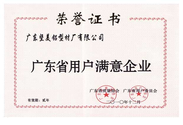 • 2010年廣東省用戶滿意企業