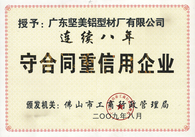 • 2009年連續八年守合同重信用企業