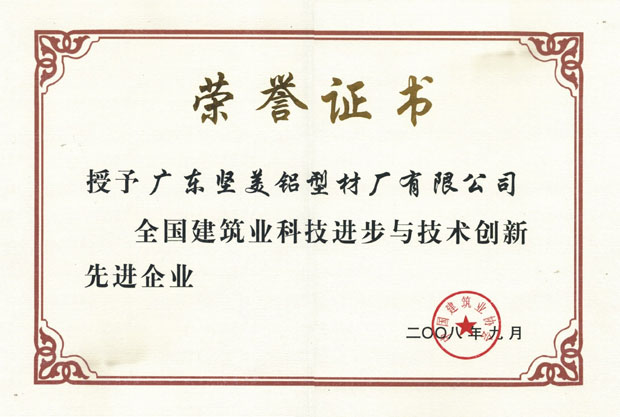 • 2008年全國建筑科技進步與技術創新先進企業