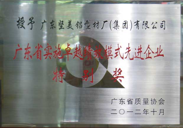 • 2012年廣東省實施卓越績效模式先進企業特別獎2
