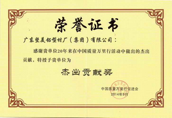 • 廣東堅美鋁業(yè)集團有限公司中國質(zhì)量萬里行杰出貢獻獎