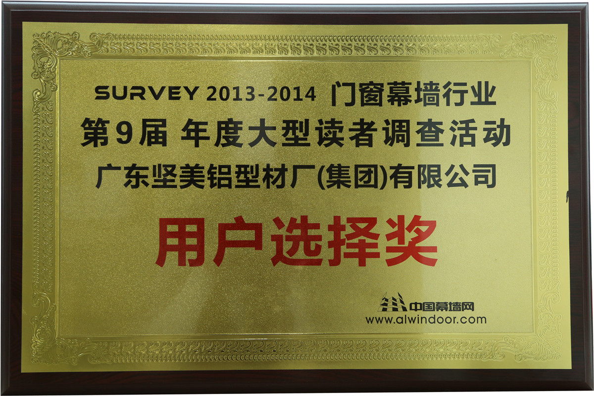• 2013-2014年度門窗幕墻行業(yè)用戶選擇獎