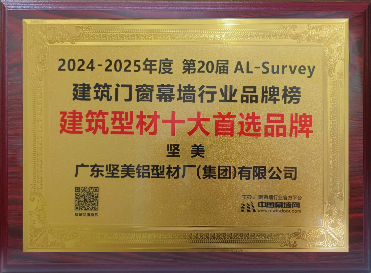 • 2024-2025年度 第20屆AL-Survey建筑門窗幕墻行業品牌榜建筑型材十大首選品牌 廣東堅美 中國幕墻網