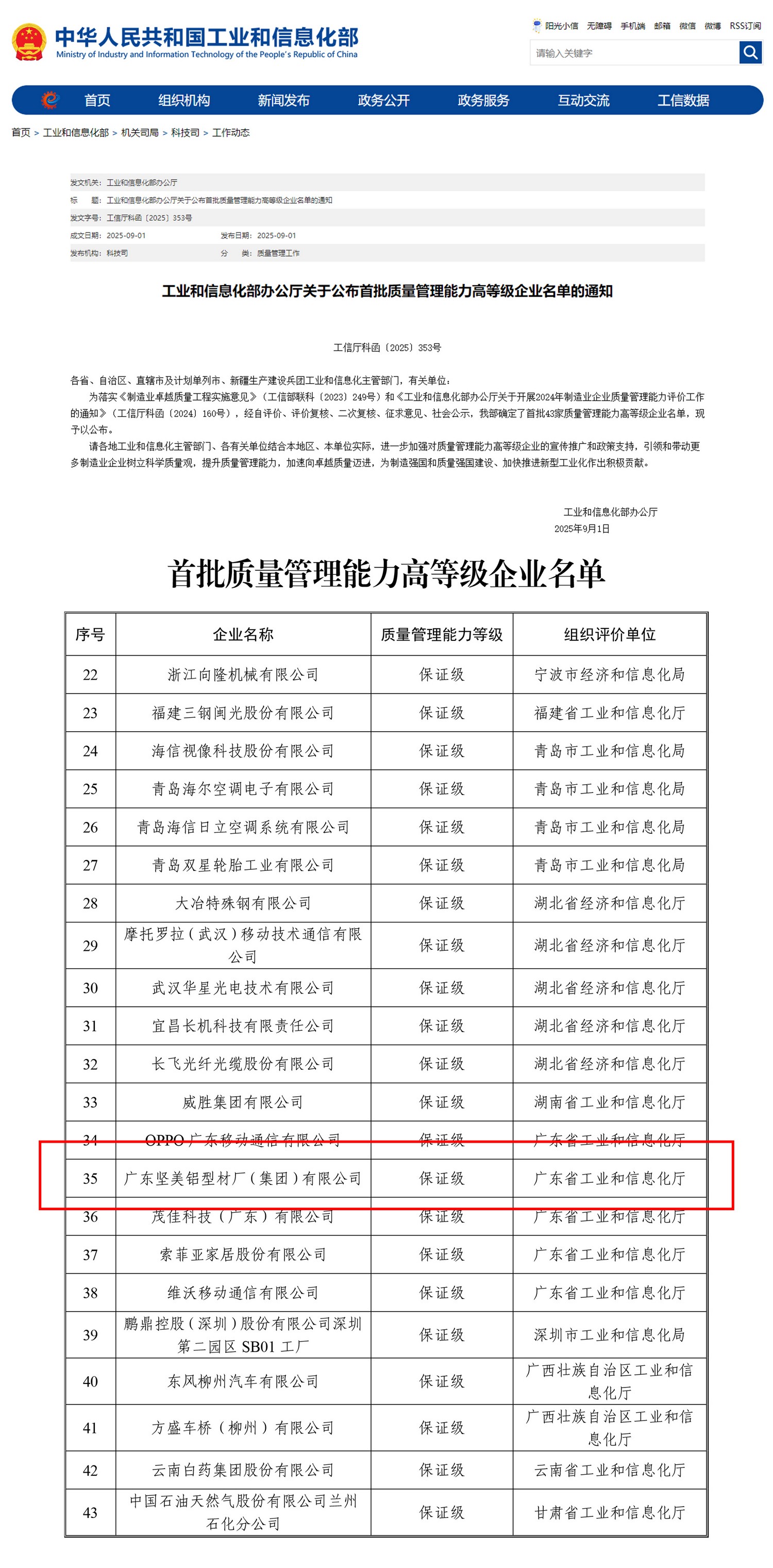 • 2025年9月 全國首批質量管理能力高等級企業(保證級)