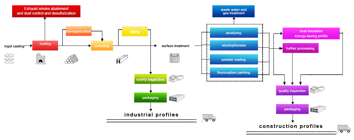 JMA Company has a complete set of production process and mechanical equipment, including R&D of aluminum profiles, casting, extruding, mold design and manufacturing, surface treatment (anodizing, electrophoresis, powder coating, fluorocarbon painting), processing of insulated profiles, deep processing of doors and windows, curtain walls, etc. It has a complete production chain of aluminum profiles, a complete auxiliary matching process, a complete process flow and a production workshop. The main products are divided into: mill finish profiles profiles, electrophoretic paint profiles, powder coating profiles, fluorocarbon painting profiles, insulated profiles, wood grain profiles and aluminum alloy door and window, anodizing curtain walls.