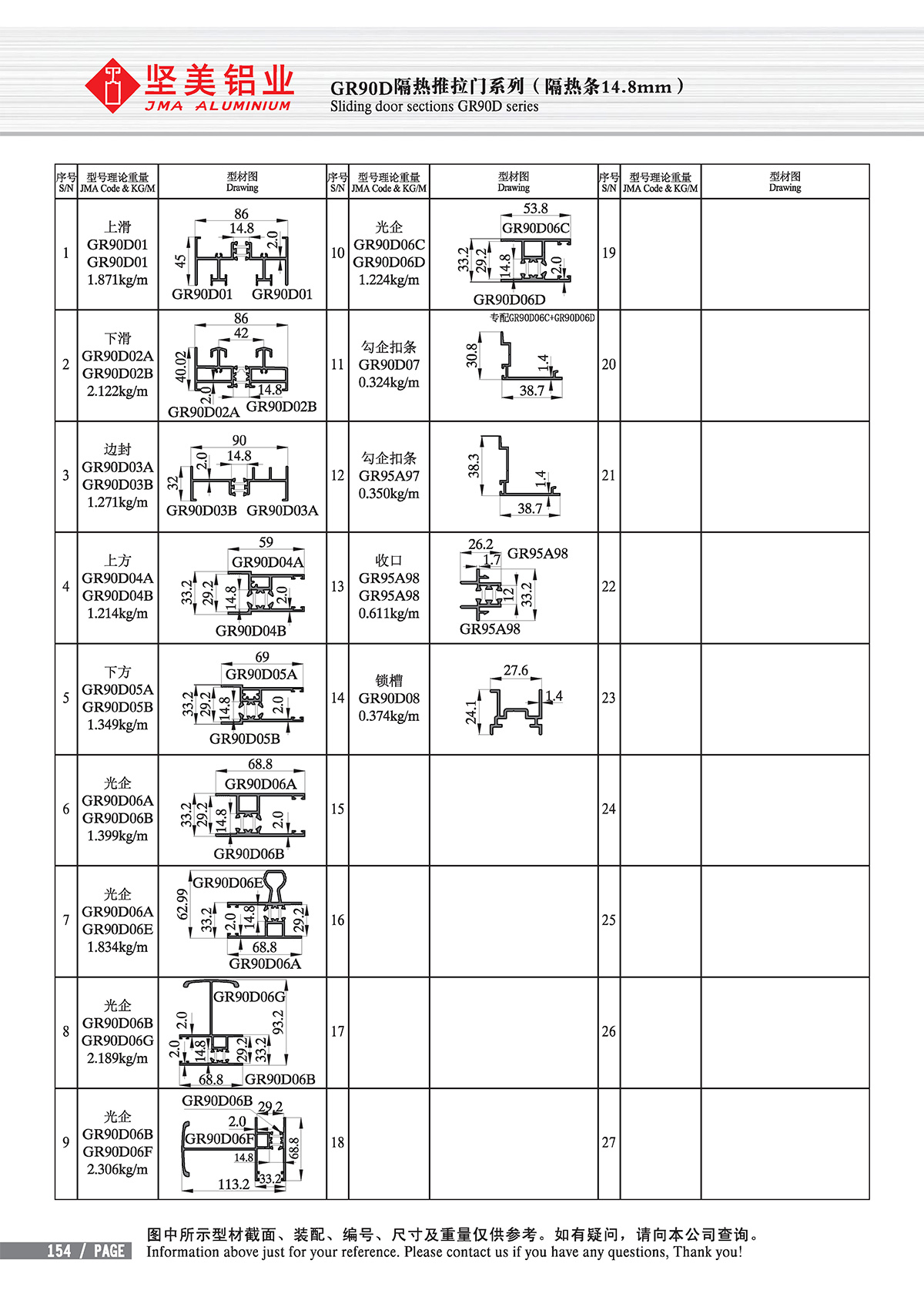 Position: Home - Product line - Thermal break - new GB standard Thermal-break - Sliding door sections GR90D/95 series