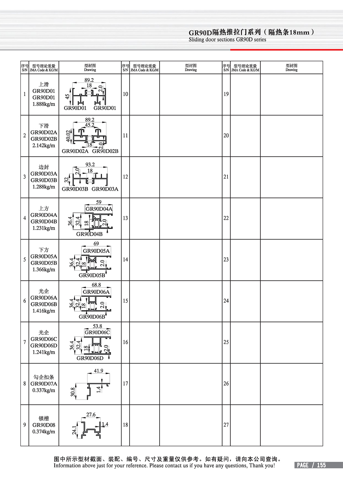 Position: Home - Product line - Thermal break - new GB standard Thermal-break - Sliding door sections GR90D/95 series
