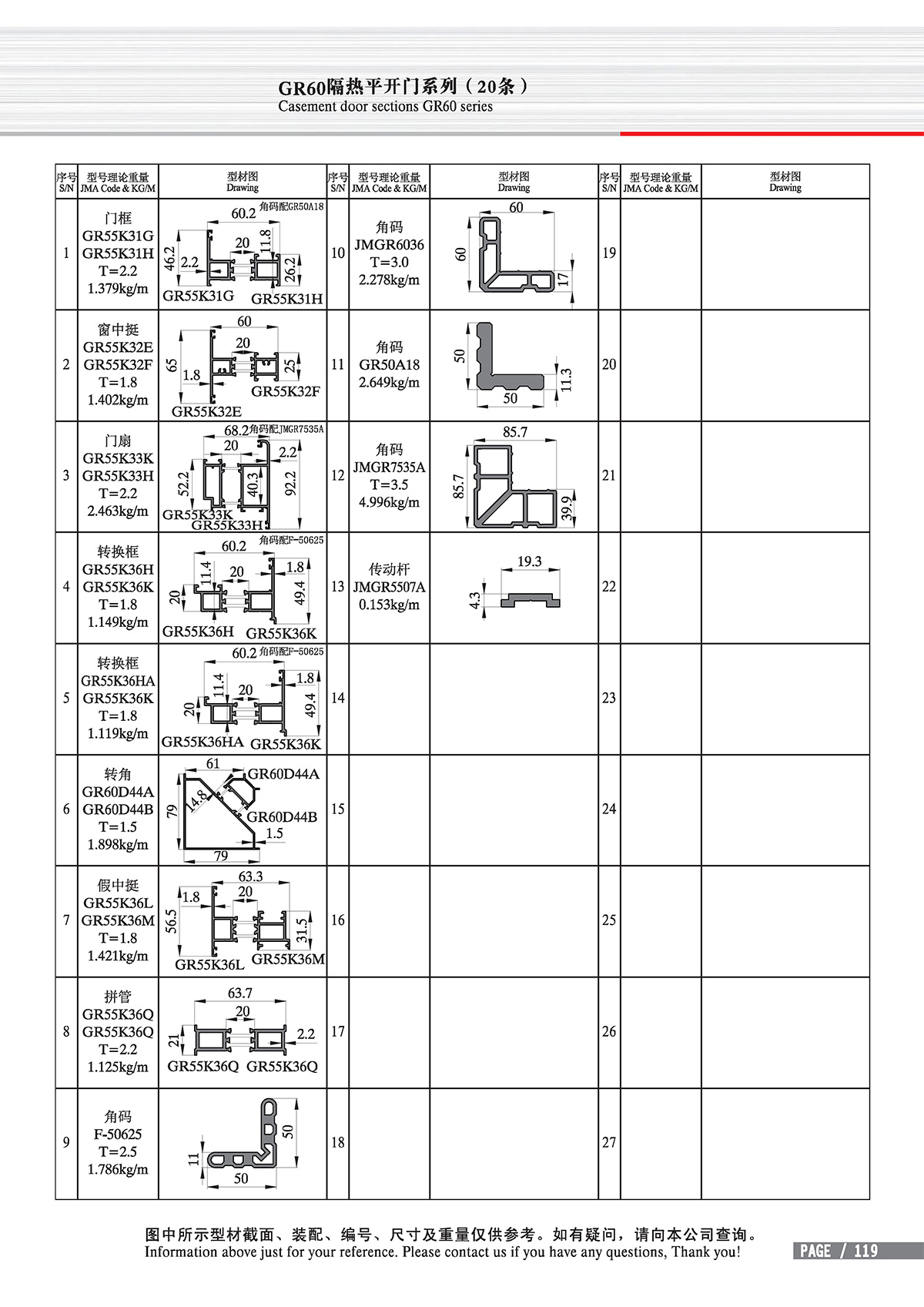 Position: Home - Product line - Thermal break - new GB standard Thermal-break - Casement door sections GR55/60/65 series