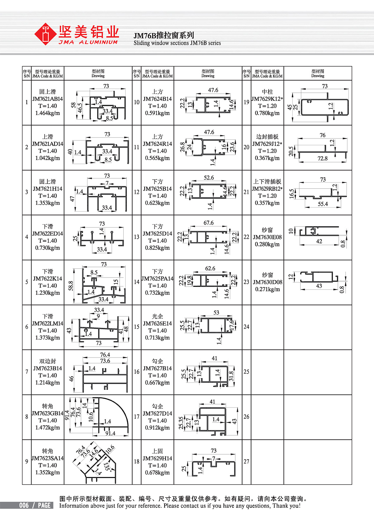 ホーム - 製品センター - 普通の建具 - Sliding window sections - Series JM76B Sliding window