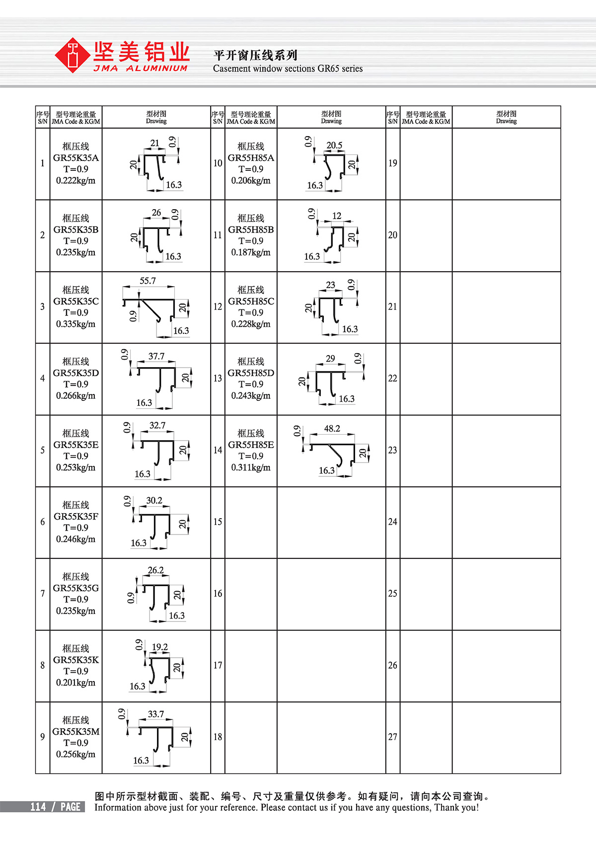 Trang ch? - Trung tam s?n ph?m - Cách nhi?t - new GB standard Thermal-break - Casement window sections GR55/60/65 series